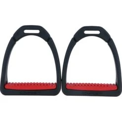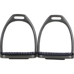 De brede roestvrijstalen antislip beugelzool heeft een grof profiel en extra lange gaten voor de afvoer van zand en water. De beugelzool is licht gekanteld, zodat de hak omlaag wordt gehouden. De afgeschuinde stijgbeugelriemophanging zorgt voor een goede beugelpositie, waardoor de voet in de juiste positie gehouden wordt. Dit geeft de ruiter meer stabiliteit en verbetert de beenligging.