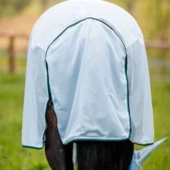 Zilverkleurige vliegendeken van zacht aanvoelend, fijnmazig en zonreflecterend polyester. Het halsstuk is afneembaar en de lange staartflap beschermd uw paard prima tegen insecten. Deken is voorzien van het Horseware linersysteem.Â