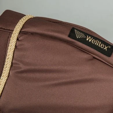 Klassiek mooi sjabrak. Gemaakt in een chique quilt stof. De Back on Track nr 1 sjabrak heeft model gestaan voor de perfecte pasvorm, de hoge kamer geeft extra comfort bij de schoft. De rugkant is uitgevoerd in ons nieuwe wafel WellTex materiaal. Hierdoor beter contact met het paard. Het sjabrak is volledig afgebiesd met gouden koord. Naast de Back on Track functionaliteit is dit sjabrak gewoon prachtig om te zien.
