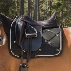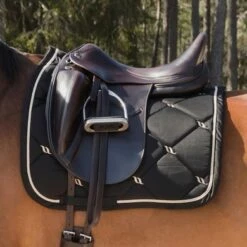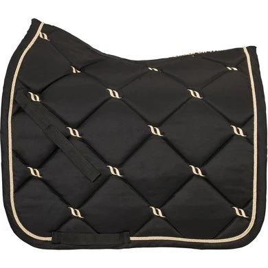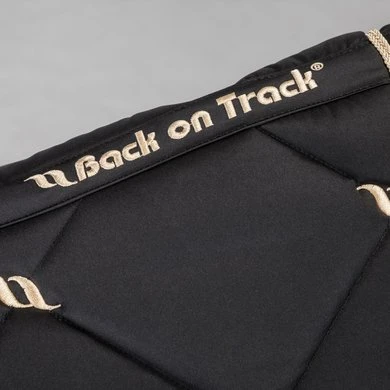 De Back on Track nr 1 sjabrak heeft model gestaan voor de perfecte pasvorm, de hoge kamer geeft extra comfort bij de schoft. De rugkant is uitgevoerd in ons nieuwe wafel WellTex materiaal. Hierdoor beter contact met het paard. Het sjabrak is volledig afgebiesd met gouden koord. Naast de Back on Track functionaliteit is dit sjabrak gewoon prachtig om te zien.