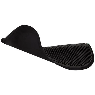 Deze anatomisch gevormde gel pad heeft aan de bovenzijde een honingraatprofiel van soft gel en aan de onderzijde een bekleding van microfiber. De uitsparing aan de voorzijde voorkomt druk op de schoft. Het honingraatprofiel van gel werkt schokabsorberend en stabiliseert het zadel. BR therapeutische soft gel heeft uitstekende antislip eigenschappen: ondersteunt geen bacteriegroei en is niet giftig. De pad kan daarom direct op de paardenrug gebruikt worden, maar tussen zadel en zadeldek is ook mogelijk. BR soft gel pads passen onder alle zadels en zijn machinewasbaar op 30°C.