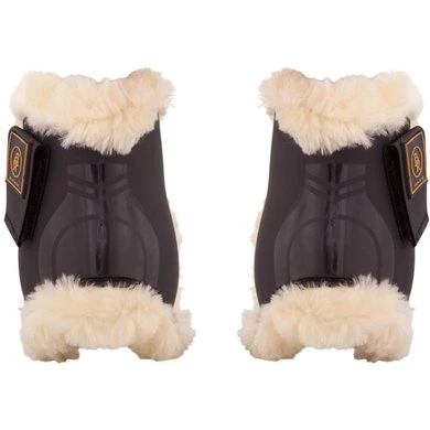 Polyurethaan kogelbeschermer met een stijlvolle glimmende print en een zachte voering van synthetische schapenvacht. Ideaal voor de gevoelige paardenhuid. Aan de achterzijde is de beschermer voorzien van een schokabsorberende gelinlage, die zich vormt naar de pees voor optimale bescherming. De kogelbeschermer is voorzien van een sterke klittenbandsluiting met elastiek en een overslag. Dankzij de gelinlage en de elastische sluitingen blijft de beschermer perfect om het been zitten. Wasbaar. Bijpassende BR peesbeschermers Snuggle.