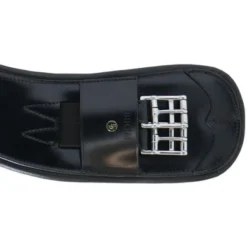 Voorgevormde lederen dressuursingel. Door de anatomische vorm wordt het paard niet gehinderd in zijn bewegingen. De singel is aan beide zijden voorzien van elastiek, wat niet alleen comfortabel is voor het paard, maar ook het aansingelen vergemakkelijkt. Door het kleine riempje in het midden van de singel kunt u snel en eenvoudig een hulpteugel bevestigen of losmaken. De D-ring is makkelijk als u een hulpteugel met musketon gebruikt. De singel is afgewerkt en roestvrijstalen rolgespen aan beide zijden. De binnenkant van de singel is voorzien van gel voor meer draagcomfort.