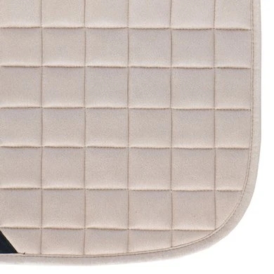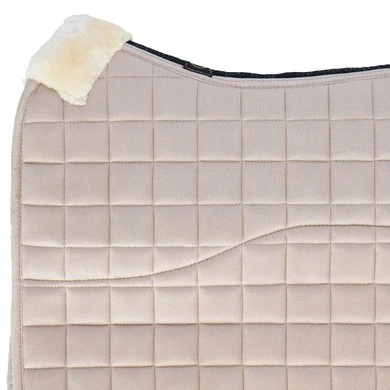 Het zadeldek heeft een luxe uitstraling dankzij het suèdine oppervlak met een vierkante stepping en de bekleding van synthetische schapenvacht. De schapenvacht is nauwelijks van echte schapenvacht te onderscheiden, laat niet los en blijft lang mooi. Het zadeldek is uitgevoerd met verstelbare singellussen met klittenband, met een extra versteviging bij de singellus.