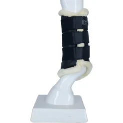 Gemaakt van duurzaam, synthetisch leer aan de buitenkant en synthetisch schapenleer aan de binnenkant, de brede klittenbandriemen helpen de laarzen aan de benen van je paard te bevestigen.