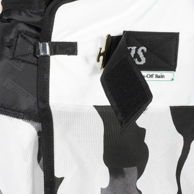 De Buzz-Off Rain is een gecombineerde regen-/vliegendeken. Een perfecte deken voor als warme en natte dagen elkaar afwisselen. De eigenschappen van de Buzz-Off vliegendekens en Sun Shower dekens zijn gecombineerd om de Buzz-Off Rain te creëren. Het bovenste gedeelte van de Buzz-Off Rain is waterproof en ademend, terwijl het onderste gedeelte is gemaakt van hetzelfde materiaal als de Buzz-Off vliegendeken. Er ontstaat dan een lichtgewicht, waterproof deken met UV-bescherming. De staartflap geeft extra bescherming aan de staart. De schouderplooien zorgen voor extra ruimte voor de schouders en de gladde voering bij de schouders is ter voorkoming van schuurplekken.  De deken heeft een T-haak borstsluiting met klittenband en is voorzien van een elastische en verwijderbare buikflap die ervoor zorgt dat de deken op zijn plek blijft liggen en de buik optimaal beschermt is tegen insecten en vliegen. De deken heeft een bilkoord en een staartflap. Er zijn bevestigingspunten aanwezig voor bilriemen (niet meegeleverd).