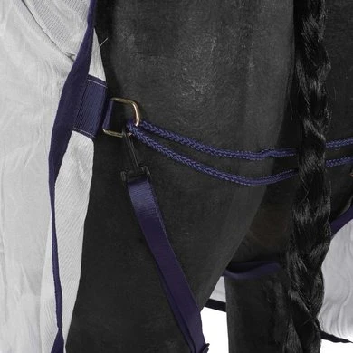 De Bucas Freedom Fly Sheet is een vliegendeken met een vaste hals. Deze deken is gemaakt van fijnmazig materiaal (polyester) om je paard te beschermen tegen de vliegen. De deken heeft een borstsluiting op de borst met een klittenband overlap,kruissingels die ervoor zorgen dat de deken op zijn plaats blijft, bevestigingspunten voor bilriemen (niet meegeleverd) en een staartkoord. Daarnaast heeft deze deken een grote staartflap die helpt de staart te beschermen. (Het masker is niet bij de deken inbegrepen).