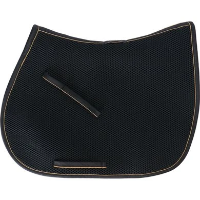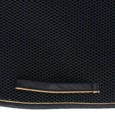 Het 3D spacer materiaal bestaat uit polyester vezels die in horizontale en verticale richting geweven zijn. Hierdoor is het materiaal duurzaam, veerkrachtig en lichtgewicht. Door de twee richtingen waarin de vezels geweven zijn ontstaat een open structuur die zeer veerkrachtig is. Daardoor biedt het goede drukverdeling en schokdemping. Een voordeel voor zowel ruiter als paard! Het materiaal vormt zich naar de rug van het paard, maar veert terug in de originele staat wanneer er geen druk wordt uitgeoefend. Het dekje zal dus geen afdruk van het zadel krijgen en de bewegingen van het paard worden goed ondersteund. De binnenste laag van het dekje dat tegen het paard aan ligt is van zachte vezels, waardoor het comfortabel is voor het paard. De buitenste laag is wat stugger waardoor het dekje goed in vorm blijft en de ruiter ondersteund wordt.