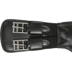 De Catago leren dressuursingel heeft een anatomische vorm die ruimte biedt aan de voorbenen. Het brede gebied in het midden van de singel verdeelt de druk tegen de borst van het paard wanneer de singel wordt aangespannen om optimaal comfort te garanderen. De extra vulling aan de binnenkant van de singel verlicht de druk van het borstbeen. De singel is aan beide zijden voorzien van elastiek.