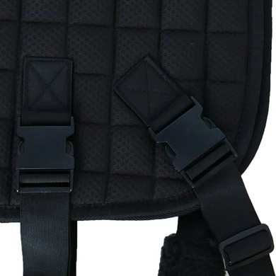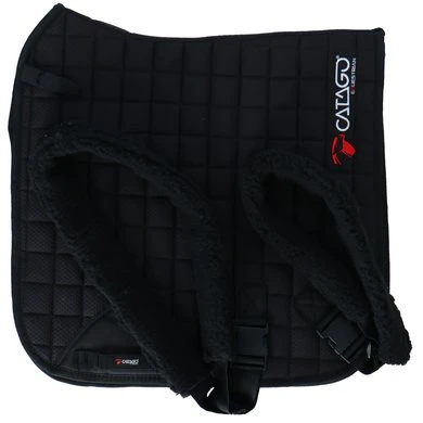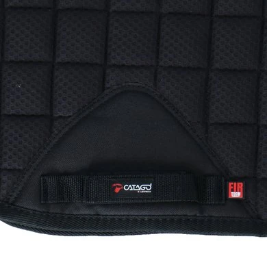 Het CATAGO FIR-Tech Training zadeldek combineert alle voordelen van het populaire FIR-Tech zadeldek met elastieken om de rug- en buikspieren van je paard te versterken. Trainen met dit zadeldek kan resulteren in verbeterde beweging en balans. Het zadeldek heeft Synthermax-vezelvulling en binnenmateriaal met geweven keramische deeltjes, wat zorgt voor een geavanceerd dubbelwerkend effect. Het speciaal ontwikkelde keramische materiaal transformeert en reflecteert de lichaamswarmte van het paard terwijl elektromagnetische infrarode warmtestraling het weefsel binnendringt en de bloedvaten verwijdt. Het resultaat is dat de flexibiliteit van de rugspieren toeneemt. Elastieken worden met grote klikgespen aan het zadeldek vastgemaakt en kunnen naar behoefte in de lengte worden versteld. Een zachte pluche voering rond de elastieken zorgt ervoor dat het paard tijdens het werk niet door de elastieken wordt gedragen. Het trainingszadeldek kan met voordeel worden gebruikt voor zowel longeren als paardrijden. Moet met voorzichtigheid worden gebruikt.