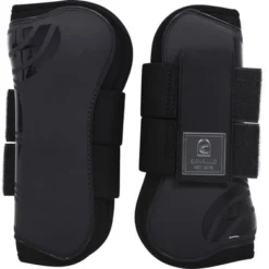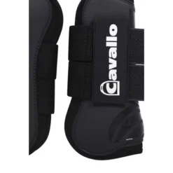 Duurzame hardshell beenkappen in een coole look. De binnenkant van de hoes is gevoerd met comfortabel neopreen. Aan de achterkant en bovenkant van de hoes zit aan de zijkant een kleine uitsparing die meer bewegingsvrijheid geeft. De beenkappen worden geleverd met twee brede elastische banden en fleeceband om aan de buitenkant te sluiten. De klittenband wordt vastgezet met een dubbele verticale klittenband. Een groot zilver Cavallo-logo is gedrukt op de bovenkant van de klittenband s