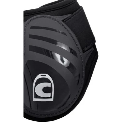 Duurzame kogelbeschermers met harde schaal. De binnenkant van de kogelbeschermers is gevoerd met comfortabel neopreen. De kogelbeschermers zijn voorzien van een brede rubberen band en klittenband aan de buitenkant om te sluiten. De banden worden vastgezet met een verticale klittenband. Op de bovenzijde van de klittenband is een groot zilver Cavallo-logo gedrukt. De binnenkant van de kogelbeschermer is bedrukt met een groot Cavallo stijgbeugellogo.