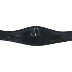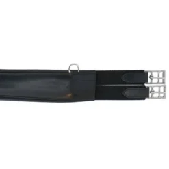 Anatomische leren studguard singel. Midden- en zijringen. Stalen gespen met elastiek. Voering van kalfsleer.