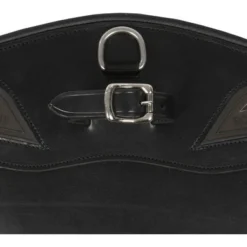 Anatomische leren studguard singel. Gesp en riem voor martingale borstsingel. Zij ringen. Stalen gespen met elastiek. Voering van kalfsleer.