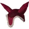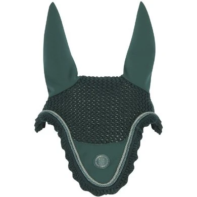 Oornetje van gehaakt katoen, inzet met logo in polyester en oorstukjes in elastische polyester stof. Afgezet met dubbele koord.