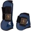 Beschermende laarzen met neopreen voering van polyurethaan. De peesbeschermers worden vastgemaakt met knopen en elastische banden, en de kogelbeschermers met zelfklevende tape. De set past perfect bij de zadeldekjes, vliegenmutsen, halsters, polobandages en gesloten peesbeschermers van de French Touch Collection.