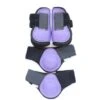 Beschermende laarzen met neopreen voering van polyurethaan. De peesbeschermers worden vastgemaakt met knopen en elastische banden, en de kogelbeschermers met zelfklevende tape. De set past perfect bij de zadeldekjes, vliegenmutsen, halsters, polobandages en gesloten peesbeschermers van de French Touch Collection.