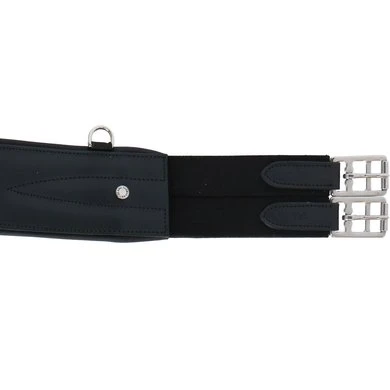 Volledig gevoerde singel met buikflap gevoerd met Clarino microvezel. Voorzien van 2 zijringen en een centrale snap met beschermende afdekking aan de onderkant. Roestvrij stalen rolgespen op drievoudige elastische ondersteuning aan elke kant.