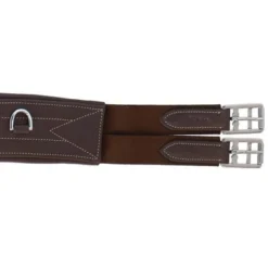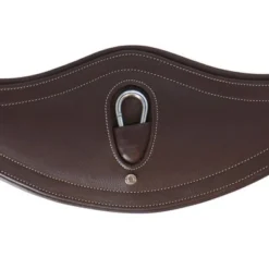 Rundleder anatomisch gevormde singel opgevuld met 4 mm EVA-schuim. Voorzien van 1 centrale ring en 2 zijringen om hulpteugels aan te brengen. Rolgespen op elastische banden. Roestvrij stalen gespen.