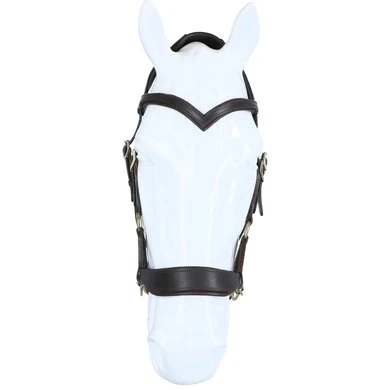 Met een V-shape frontriem, nekstuk anatomisch gevormd, neusriem breed aflopend, high density foam in de nek, neus en frontpadding welke verwisselbaar is van kleur, inclusief 18 mm softleder teugels met clips