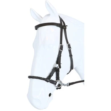 Touwknoophalsters: Touwknoophalsters zijn er in vele varianten en uitvoeringen, de F.R.A.® nh touwknoophalsters kenmerken zich door een veelvoud van maatvoeringen in de dikten 6, 7 en 8mm. Naast een basic uitvoering, de Babia, in 3 maten vind je een 6mm uitvoering, de Capal, in 5 maten en een 7mm uitvoering, de Pablo, in 3 maten. De laatste twee uitvoeringen zijn voorzien van een nubuck, resp. lederen nek- en neusbescherming en zijn gericht op professioneel gebruik. Juist de maatvoering van een knoophalster speelt een zeer belangrijke rol, het halster dient juist, zonder veel speling, aansluiting te vinden op het paardenhoofd. Ligging: Zoals bij alle bitloze optomingen geldt ook voor de sidepull en voor het knoophalster, dat de neusriem op het harde gedeelte van de neus moet liggen, ongeveer daar waar het neusbeen begint. De kinriem van de sidepull uitvoering mag gevoelsmatig ’te’ vast, maar beslist niet aangesnoerd zijn. Dit om verdraaiïng van het hoofdstel te voorkomen. Inwerking:Sidepull: Letterlijk vertaald betekent het woord sidepull : ’zijwaarts trekken’. Dat doet deze optoming dan ook, het van de hals afbrengen van de hand (openen) heeft tot gevolg dat de combinatie van de verbinding van het bakstuk naar de neusriem via beide riempjes en ring druk uitoefent op de tegenovergestelde wang: wendingen. Het vragen van de teugel (ophoudingen) heeft een discriminerende hulp van druk op de neus tot gevolg, hetgeen resulteert in tempowisselingen en òf halthouden. Dit uiteraard in combinatie met overige ondersteunende hulpen. Het hoofdstel leent zich tot normaal longeren uitsluitend met gebruik van een longeerbril. De longeerbril haakt u in de ringen waar normaal de teugels worden vastgemaakt. Voor het longeren aan de dubbele lijnen en pessoa longeren gebruikt u dezelfde ringen. (beschikbare modellen F.R.A.® pardoes en F.R.A.® shango)