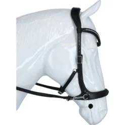Touwknoophalsters: Touwknoophalsters zijn er in vele varianten en uitvoeringen, de F.R.A.® nh touwknoophalsters kenmerken zich door een veelvoud van maatvoeringen in de dikten 6, 7 en 8mm. Naast een basic uitvoering, de Babia, in 3 maten vind je een 6mm uitvoering, de Capal, in 5 maten en een 7mm uitvoering, de Pablo, in 3 maten. De laatste twee uitvoeringen zijn voorzien van een nubuck, resp. lederen nek- en neusbescherming en zijn gericht op professioneel gebruik. Juist de maatvoering van een knoophalster speelt een zeer belangrijke rol, het halster dient juist, zonder veel speling, aansluiting te vinden op het paardenhoofd. Ligging: Zoals bij alle bitloze optomingen geldt ook voor de sidepull en voor het knoophalster, dat de neusriem op het harde gedeelte van de neus moet liggen, ongeveer daar waar het neusbeen begint. De kinriem van de sidepull uitvoering mag gevoelsmatig ’te’ vast, maar beslist niet aangesnoerd zijn. Dit om verdraaiïng van het hoofdstel te voorkomen. Inwerking:Sidepull: Letterlijk vertaald betekent het woord sidepull : ’zijwaarts trekken’. Dat doet deze optoming dan ook, het van de hals afbrengen van de hand (openen) heeft tot gevolg dat de combinatie van de verbinding van het bakstuk naar de neusriem via beide riempjes en ring druk uitoefent op de tegenovergestelde wang: wendingen. Het vragen van de teugel (ophoudingen) heeft een discriminerende hulp van druk op de neus tot gevolg, hetgeen resulteert in tempowisselingen en òf halthouden. Dit uiteraard in combinatie met overige ondersteunende hulpen. Het hoofdstel leent zich tot normaal longeren uitsluitend met gebruik van een longeerbril. De longeerbril haakt u in de ringen waar normaal de teugels worden vastgemaakt. Voor het longeren aan de dubbele lijnen en pessoa longeren gebruikt u dezelfde ringen. (beschikbare modellen F.R.A.® pardoes en F.R.A.® shango)