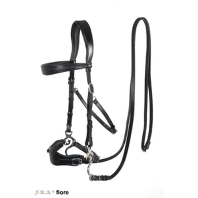 F.R.A. fiore hackamore hoofdstel (syst.2) zwart engels leder, kaakriem, lederen teugel, met scharen