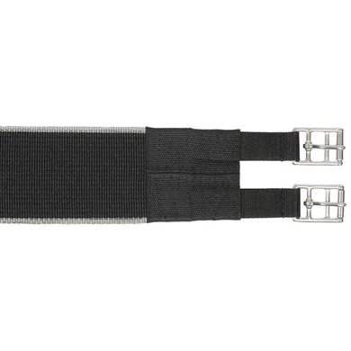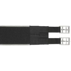 F.R.A.® supersingel… … eindelijk, uw paard vroeg erom ! Dé singel die uw paard volledige bewegingsvrijheid geeft en toch uw zadel als een rots fixeert! Belangrijkste kenmerk van deze bijzondere singel is het elastisch zijn over de volledige lengte èn breedte met een graad van elasticiteit die volledig is afgestemd op de buikkrachten van ons paard. Deze kwalitatief hoogwaardige singel van duits fabrikaat wordt geweven uit hoogwaardige „Polyamid 6“ elastische draden, welke zich kenmerken door een extreem hoge stevigheid in elasticiteit. Deze bijzondere techniek van het weven van 20 elastische filamenten, die op zich bestaan uit de 9 stuks enkele “polyamid 6” draden wordt nergens ter wereld geëvenaard. Dit alles maakt het uiteindelijk mogelijk dé singel te produceren die voor het paard een ongekend zachte en vriendelijke drukverdeling tot gevolg heeft. Een simpele vergelijking om te weten wat je paard van de singel voelt is je eigen gevoel dat ontstaat als je zelf stretch kleding draagt. Bij verschillende lichaams-houdingen of bezigheden blijft de stretch zacht aanvoelen en er ontstaat geen enkele bewegings belemmering. Ook de stoten van je zadel worden gespaard, de elasticiteit van de singel geeft, zoals bij andere singels, geen piekbelasting, waardoor de gaatjes niet meer kunnen inscheuren. De openstructuur van de weving zorgt voor luchtdoorlatenheid, het doorlaten van vocht (zweet) is aldus gewaarborgd. De singel is machinewasbaar onder 30° progamma. Nasingelen is overbodig, de singel past zich 100% aan, geeft 100% mee aan elk wisselend krachtenveld en dus wisselende omvang van de buik van je paard ……… ja, uw paard vroeg erom! Standaard maten, oplopend met 5 cm, verkrijgbaar in zwart en bruin: * normaal 090 – 145cm * dressuur 035 – 100cm * western 055 – 100cm Elke gewenste afwijkende maat is op bestelling leverbaar. Met de F.R.A.® supersingel kan uw paard zich nu vrij bewegen en hoeft zich niet meer ingesnoerd te voelen !!