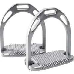Ulra lichte, gelakt aluminium stijgbeugel met grote opening. Extra brede 7cm anti-slip comfort zolen met aflopende rand om de hakken te helpen uitdrukken.