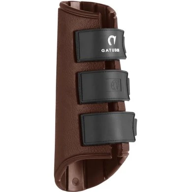 Gatusos voorpeesbeschermers Royal model. Paar professionele voorbeschermers in innovatief gepatenteerd materiaal EVA GUMFLY (Ethylene Vinyl Acetate). Gemaakt uit één stuk antibacterieel schokabsorberend materiaal, dus naadloos, met een anatomische schaal voor een uitstekende pasvorm en met een extra resistente dubbele klittenbandsluiting. Dankzij het speciale materiaal zijn ze gemakkelijk te wassen en te drogen, zeer resistent en gaan ze lang mee.