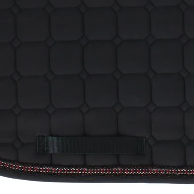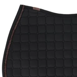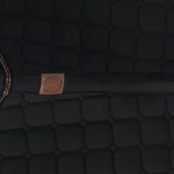 Dit zadeldek is gemaakt van polykatoen. De wafelkatoenen voering zorgt voor een betere absorptie en een optimaal ademend vermogen. De honingraatvormige vulling past zich aan alle paardenmorfologieën aan. Hij is slank en elegant en geschikt voor zowel intensieve trainingssessies als voor recreatief rijden. De stevige snit en vorm van het zadeldek zorgen ervoor dat het onder het zadel op zijn plaats blijft en grotendeels loskomt.