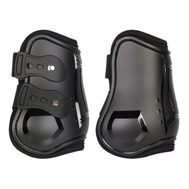 Prachtige kogelbeschermers welke zich kenmerkt door een uitstekende pasvorm. Vervaardigd uit hoogwaardig TPU-materiaal. Afgewerkt met druk-sluitingen (2). Dus geen problemen met loslatend klittenband. De sluitingen hebben een breedte van 3cm. Lengte achterzijde: 11.5cm. Deze beenbeschermer is speciaal ontworpen voor de achterbenen (voorbenen zie artikelnummer 33200013). Deze kogelbechermers voldoen aan de eisen van de FEI/ KNHS voor springrubrieken voor jonge paarden en voor pony’s en Children (vanaf 2020 Junioren en Yound Riders en vanaf 2021 voor alle springrubrieken).