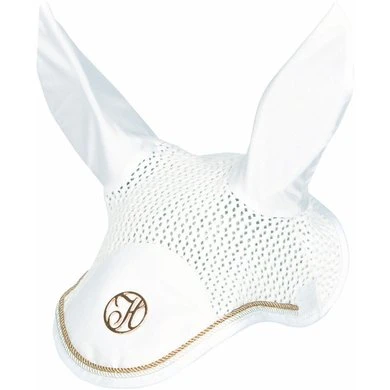 Oornetje met elastische oren. Gehaakt, voorzien van gevlochten sierkoorden en contrasterende bies. Door de rose goud kleuringe badge een ware eyecatcher! Materialen: 100% acryl, binding 100% HDTC (100% polyester), lycra 100% polyester.