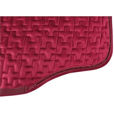 Zadeldek in luxe fluweel stof, voorzien van een dubbel koord met crystallen ertussen en een singellus Materiaal: 100% polyester, vulling 8mm foam en 200gr polyfill, mesh voering