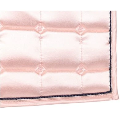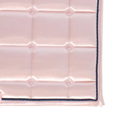 Zadeldek met rondom een sierkoord en voorzien van singel- en zadellussen. Met DC borduring in de quilt. Materiaal: 100% Polyester satin, vulling 1cm PU foam en 200gr polyfill, voering 100% polyester quick dry mesh.