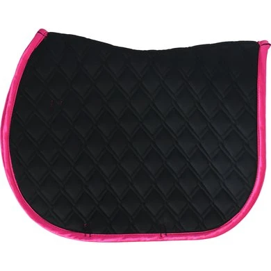 Satijn zadeldek met een luxe 3-voudig sierkoord rondom. Voorzien van singel- en zadellussen. 100% polyester.