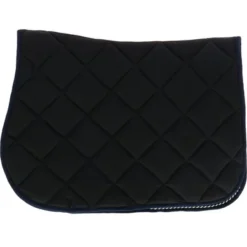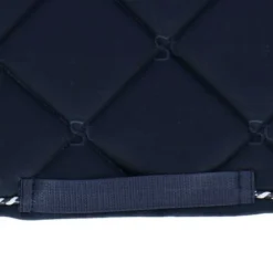 HB Showtime anatomisch zadeldek. Anatomisch zadel dek met een mooie pasvorm onder het zadel. Katoenen buitenstof met gestept St logo. Binnenzijde van dit dek is gevoerd met cool Max voering. Dit voor een betere vocht opname en warmte regulerend. Met 2 kleurig fantasie koord.