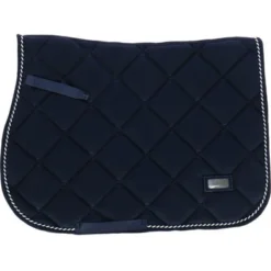 HB Showtime anatomisch zadeldek. Anatomisch zadel dek met een mooie pasvorm onder het zadel. Katoenen buitenstof met gestept St logo. Binnenzijde van dit dek is gevoerd met cool Max voering. Dit voor een betere vocht opname en warmte regulerend. Met 2 kleurig fantasie koord.