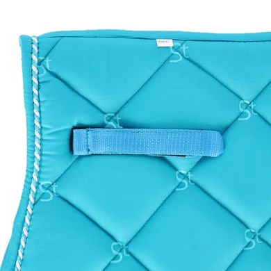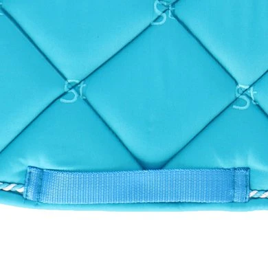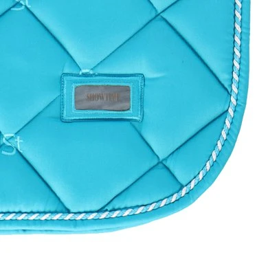 HB Showtime anatomisch zadeldek. Anatomisch zadel dek met een mooie pasvorm onder het zadel. Katoenen buitenstof met gestept St logo. Binnenzijde van dit dek is gevoerd met cool Max voering. Dit voor een betere vocht opname en warmte regulerend. Met 2 kleurig fantasie koord.