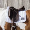 Luxe katoenen anatomische zadeldek met dubbel sierkoord Binnen zijde van deze dekjes is voorzien van Cool max voering deze reguleert de warmte en heeft een zeer goede vocht opname. kleur: navy met rood/wit koord zwart met goud/ wit koord