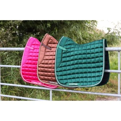 Luxe anatomisch zadeldek met speciale verdikking aan de voorzijde van het dekje dit om de pasvorm onder het zadel te verbeteren. De buitenzijde van dit zadeldek is gemaakt van speciale glans stof. Perfect zadel model om drukking te voorkomen. Aan binnenzijde is dit dekje gevoerd met cool-max voering.