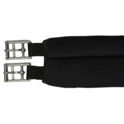Singel van zacht neopreen, met RVS rolgespen en D-ring in het midden voor het eventuele gebruik van hulpteugels