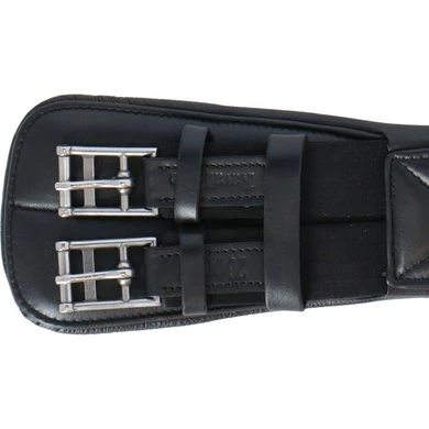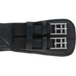 Zachte leren, anatomisch gevormde singel die meebeweegt met de bewegingen van het paard. De singel is voorzien van elastiek bij de gespen.