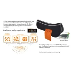 Unieke zadelonderlegger met slimme moleculen om de druk en schokken op te vangen. Als de druk afneemt, wordt het materiaal direct weer zacht. De onderlegger is 1,1 cm dik en is voorzien van anti-slip.