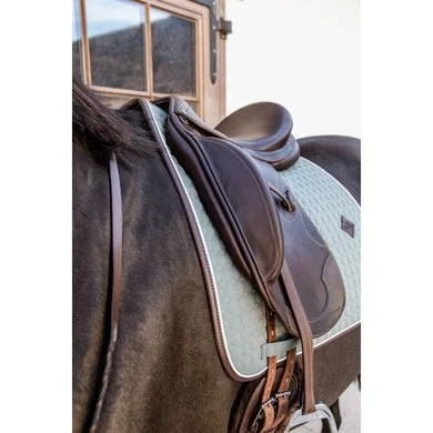 Ons Classic Leather zadeldoek is een zeer stijlvol zadeldoek met een kunstlederen band en ons bekende Kentucky-logo. Deze mooie kleuren passen bij al onze andere klassieke producten. De Hexagon quilting zorgt voor een elegante uitstraling die tijdloos is.