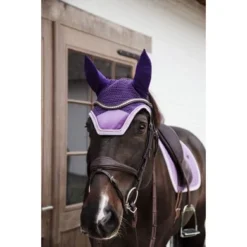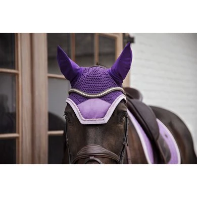 Fly Veil Velvet Contrast beschermt de oren van het paard tegen vliegen tijdens het