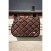 Onze veelzijdigheid zadeldoek Fishbone heeft de ideale vorm voor jumping, zorgt voor een schokabsorberend effect tussen de rug van het paard en het zadel en voorkomt wrijving. Dit dekje heeft het unieke visgraat motiefen is gemaakt uit zeer ademend materiaal (43% nylon, 43% polyester en 14% spandex). Dankzij de goede pasvorm is er geen nood aan lus vooraan om het dekje aan het zadel vast te maken, wel een nylon riem voor de singel. De fishbone zadeldoek heeft een subtiel lederen logo in dezelfde kleur als het dekje maar tegelijk ook nog voldoende ruimte om te borduren.Wasbaar op30°, geen droger.
