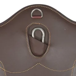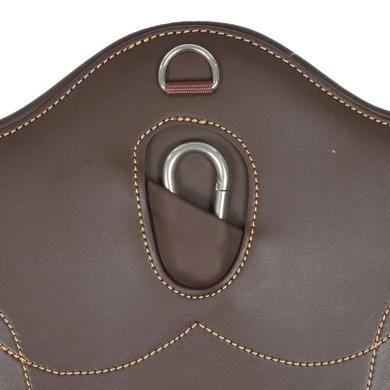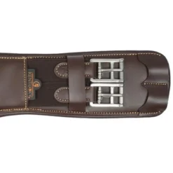 De Short Stud Girthis anatomisch gevormd en biedt comfort en bescherming tijdens het springen. De wijde buiklap beschermt de buik van het paard tegen de hoefijzers of kalkoenen tijdens het springen. De singel is gevuld met schokabsorberend EVA-schuim en is aan beide zijden uitgerust met driedubbele elastiek die zeer sterk is en niet uitrekt, alsook heeft deze een D-ring om hulpteugels aan vast te maken. Er werd eveneens een karabijnhaak voorzien om de borstriem aan vast te maken. De anatomische buiklapsingel is gemaakt van artificieel leder waardoor deze zeer gemakkelijk te onderhouden is, geen zweet opneemt en dus geen barsten vertoont of verkleurt. De Buiklapsingel kan worden schoongemaakt met onze Kentucky Horsewear Tack Cleaner. Deze werd speciaal ontwikkeld om artificieel leder proper te maken. Uiterst gemakkelijk en efficiënt!