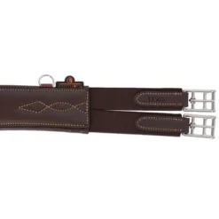 De Sheepskin Stud Girth singel is anatomisch gevormd en biedt comfort en bescherming tijdens het springen. De wijde buiklap beschermt de buik van het paard tegen de hoefijzers of kalkoenen tijdens het springen. De artificiële wollen voering wordt vastgemaakt aan de binnenzijde van de singel aan de hand van een stevige klittenband. Deze voering geeft een zeer aangenaam gevoel en is uiterst geschikt voor paarden met een gevoelige huid.De singel is gevuld met schokabsorberend EVA-schuim en is aan beide zijden uitgerust met driedubbele elastiek, alsook heeft deze drie D-ringen om hulpteugels aan vast te maken. Er werd eveneens een karabijnhaak voorzien om de borstriem aan vast te maken. De Anatomische Buiklapsingel is gemaakt van artificieel leder waardoor deze zeer gemakkelijk te onderhouden is, geen zweet opneemt en dusgeen barsten vertoont of verkleurt. De Buiklapsingel kan worden schoongemaakt met onze Kentucky Horsewear Tack Cleaner. Deze werd speciaal ontwikkeld om artificieel leder proper te maken.