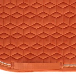 Dit zadeldoek Saddle Pad Velvet met dubbel gedraaide bies is zeer stijlvol en elegant. Biedt een schok dempende functie aan tussen de rug van het paard en het zadel en voorkomt eventuele wrijving. Het logo is centraal geplaats zodat er nog mogelijkerwijs plaats is voor borduurwerk. Er zijn bovenaangeen vervelende bandjes aanwezig om het zadel vast te maken, enkel bandjes voor de singel. Wasbaar op 30°, geen droger.